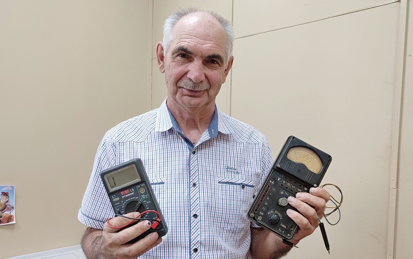Сейчас мы видимся не очень часто, только по праздникам на площади, да когда он не может справиться с ремонтом бытовой китайской техники. Но недавно я был сильно удивлён: предварительно позвонив мне, он принёс на ремонт свой тестер. Вау, да это же Тт1 — первый советский комбинированный измерительный прибор (ампервольтомметр, авометр, мультиметр, тестер), являющийся первым массово изготовлявшимся радиопромышленностью СССР. Всего за годы выпуска было изготовлено несколько сотен тысяч штук приборов. Представлял собой портативный измерительный прибор такого класса. Производство начато в 1947 г. Раритет! Немного покопавшись внутри, я нашёл обрыв проволочного сопротивления, ну и конечно же, севшие батарейки. Причём штатно должны использоваться элементы 1,3ФМЦ-0,25 (ФБС-0,25, 332, R10) . Элементы крепятся металлическими хомутиками, которые служат заодно и минусовыми контактами. Поэтому элементы должны быть без внешней изолирующей оболочки и иметь «минус» на корпусе. Таких сейчас не найти… Внимательно изучив схему (нашёл в интернете) я увидел: на трех нижних пределах измерения сопротивлений используется только один элемент, а на пределе «×1000», для измерения больших сопротивлений, — все четыре. Измерять мегаомы в быту ни к чему, и поэтому я установил одну ААА (мизинчиковую) батарею, припаяв провода к штатным контактам. Прибор заработал и довольно точно выдавал результаты измерений.