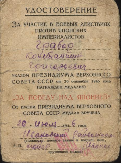 Пожалуй, в каждой семье нашей огромной страны есть своя история о подвигах и военной славе их родных и близких людей. Моя семья также не стала исключением, так как оба моих прадеда воевали во время Великой Отечественной войны, прошли через все её тяготы и вернулись домой на родную Амурскую землю победителями. Сейчас их уже нет с нами, но память о них бережно хранится в наших сердцах.