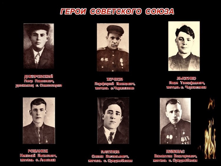 Герой Советского Союза – как гордо звучат эти слова. Это почётное звание могли получить только избранные, которые отличились определёнными заслугами или совершили подвиг. В Ивановском районе их шесть, благодаря подвигу которых мы сегодня живём, растим своих детей.